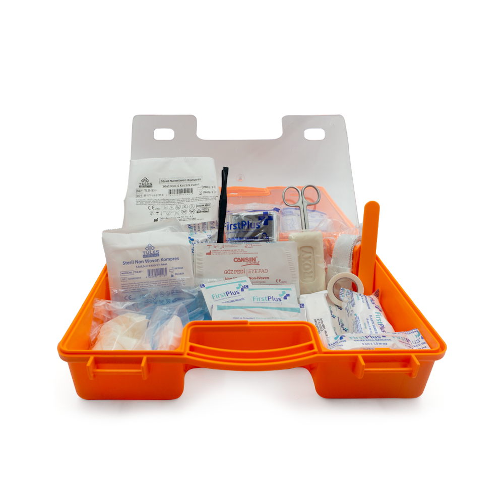 Türkiye’de güncel bir iş yeri ilk yardım seti yönetmeliği olmadığı için, Alman DIN standardı dikkate alınarak hazırlanmıştır.